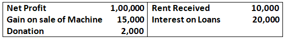 Operating Profit = Net Profit – Rent Received – Gain on Sale of Machine + Interest on loan +Donation