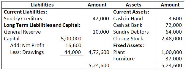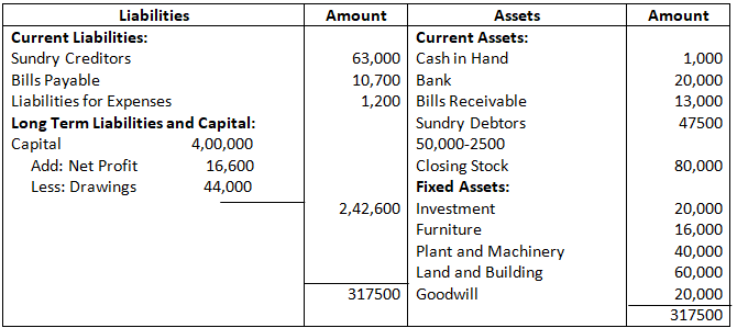 - Current Assets = Stock in Hand + Debtors + Prepaid Expenses