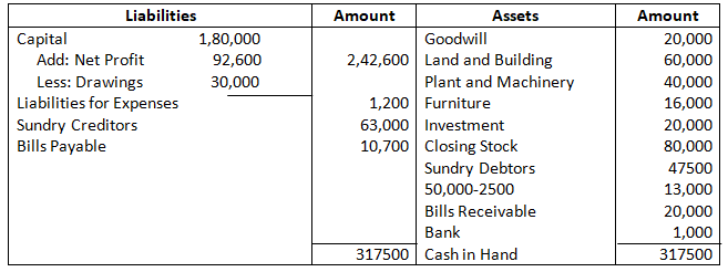 Opening stock = 10,00,000 – 10,00,000 – 2500 + 1,00,000