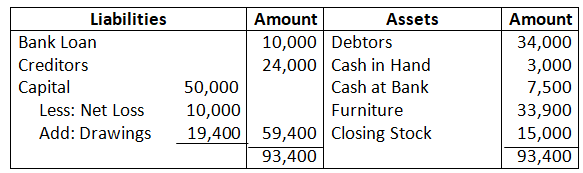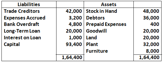 - Current Liabilities = Trade Creditors + Expenses Accrued + Bank Overdraft + Interest on loan