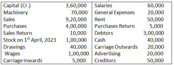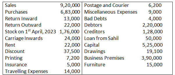 You are required to prepare Trading Account, Profit and Loss Account and Balance Sheet as at 31st March, 2025.