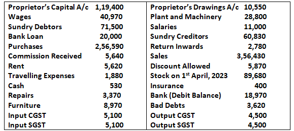 Q23. The following are the balances as on 31st March, 2025 extracted from the books of Dass: