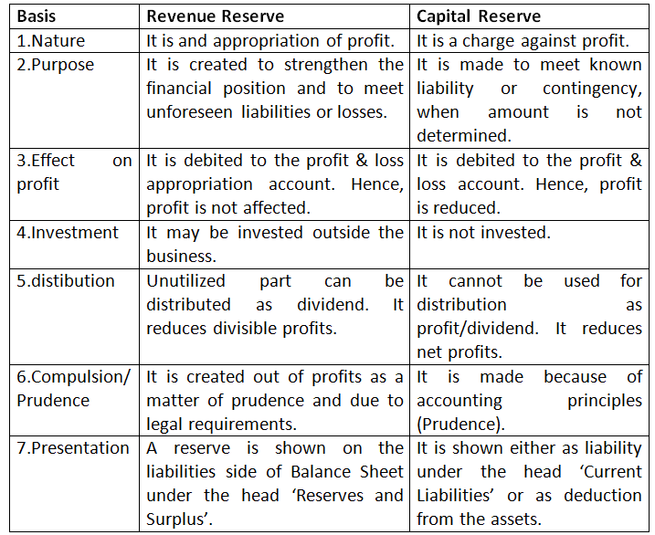 Difference between Revenue and Capital Reserve